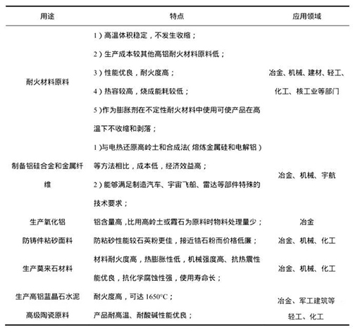 由于其较高的铝含量、很高的耐火性、体积稳定性、对酸碱,甚至氢氟酸具有很强的抗侵蚀能力,抗磨,耐化学腐蚀,荷重软化温度高,抗渣、抗热震性能优良,在上世纪20年代开始便作为一种重要的耐火材料原料而为人关注,目前其在耐火材料的生产中被广泛用于散状料的膨胀剂。